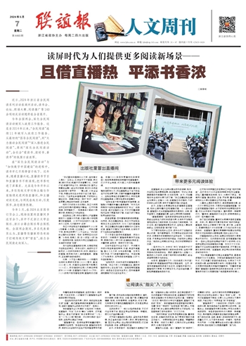 今年1月,在2024北京图书订货会上,现场设置的直播间多达百余个,其中不乏浙江大学出版社、浙江古籍出版社等出版机构。全国两会期间,多名代表委员认为,直播等传播新形态有助于打破传统文学“壁垒”,助力全民阅读走向深入。