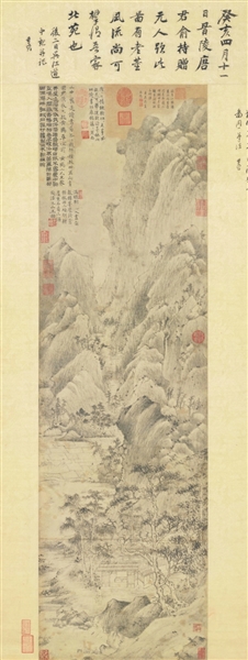 王蒙(1308~1385),字叔明,号黄鹤山樵,吴兴(今浙江湖州)人。他出身于书画世家,天赋极高,自幼就喜爱诗文、书画,尤擅画山水。他年轻时曾出任理问一职。在元朝统治时期,南方汉人地位最为低下,被列为第四等人,尤其是读书人被嘲笑为“八娼九儒十丐”,地位仅高于乞丐。王蒙在官场深受排挤,无法实现自己的政治抱负,心情非常郁闷。他的好友倪瓒写诗劝他隐居山林专业画画,诗云:“野饭鱼羹何处无,不将身作系官奴。陶朱范蠡逃名姓,那似烟波一钓徒。”于是王蒙弃官隐居于黄鹤山(今杭州东北临平星桥一带),自号黄鹤山樵和黄鹤山人。他在这里览云观山,会贤访友,读书、画画、写字,过着“卧青山,望白云”的悠闲生活,积累了丰富的山川河流素材,所以他的山水画多以隐逸、读书为题材,托物言志,表达了作者内心对隐居生活的极致向往,也成了他生命的一部分。他在绘画中既表现了枕石漱流的幽情逸致,也反映出不仕元廷的高节迈俗,将山水画的隐逸性推向了更高的境界。他的这类作品平静超脱,沉郁深秀,浑厚华滋,能给人以精神上极大的放松。这一时期是王蒙创作的高峰时期,其艺术成就最高的作品就是出现在此时。清人孙琮有诗云:“昔年王叔明,兹山寄遐踪。以笔代樵斧,画山尽千松。至今尺幅上,古法人独宗。”王蒙与倪瓒、黄公望、吴镇被后人称为“元四家”。