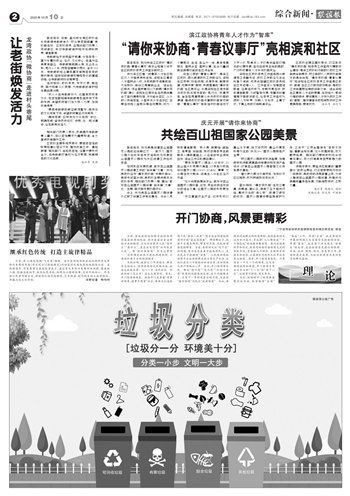 区政协主席王国珍表示,切实抓好“请你来协商”和委员工作室两大履职平台建设,是滨江政协践行新时代政协工作新使命新要求、树立新时代人民政协新样子的具体体现。“请你来协商·青春议事厅”和滨和社区政协委员工作室是区政协、街道、社区三级联动的好载体,是政协工作向基层延伸的创新之举。结合滨和社区青年人才活跃度高、流动性大、感染力强的特点,要将青年人才作为政协工作的“智库”,推动建言资政和凝聚共识工作更具特色、更有成效。通讯员 颜利飞