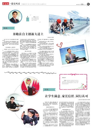 “做一名学生满意、家长信任、同行认同的优秀教师始终是我努力的目标,也是一名政协委员应有的担当。我一直努力在本职岗位做出优异成绩,同时发挥委员作用,精准建言献策、汇集力量、凝聚共识。”