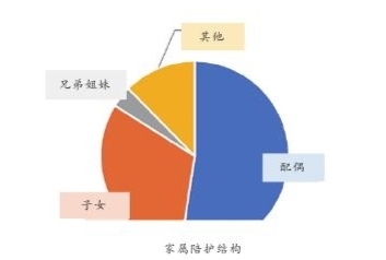 对接受调研的770名家属陪护人员进行分析,陪护最多的是配偶,占比约52%,其次是子女,占比约31%,兄弟姐妹约占3%,其他约12%。对于独生子女家庭,如果家中还有其他人需要照顾,配偶陪护就会出现顾此失彼的情况。