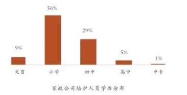 调查结果显示,初中文化及以下学历占比94%,总体学历偏低,接受再次培训和学习的能力弱。虽然家政公司在上岗前针对跌倒预防、火灾、卫生等进行培训,但基础生活照护以看视频、自学为主,护工的主动学习性差,对自己要求低,所以很难达到效果。家政公司有岗位培训计划,如每年安排7次,每次0.5~1小时,但是因为没有脱产的培训时间、没工资,护工多不愿意参加培训。