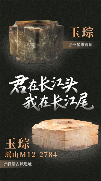 35年前,三星堆就曾经出土过玉琮,而金沙遗址更是出土了27件玉琮及3件石琮,是目前商周时期祭祀场所中出土琮最多的一处。“君住长江头,我住长江尾”,玉琮在良渚和三星堆的出现,用文物串联起了两个地理位置相隔千里的长江流域文明。