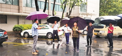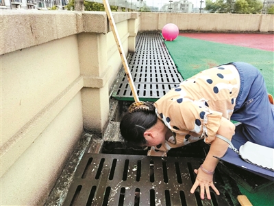 | 西湖区政协委员朱莺是西溪花园幼儿园副园长,她带领西溪花园幼儿园防汛抗台小分队在岗值守。巡查校园过程中发现屋顶排水沟有积水情况,她冒雨跪地清理疏通,排除隐患。 |