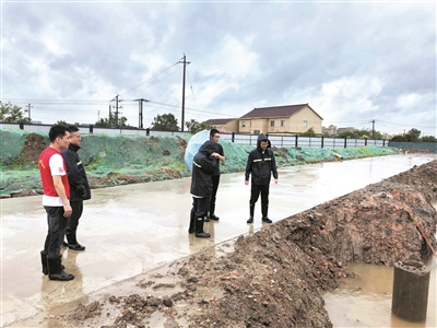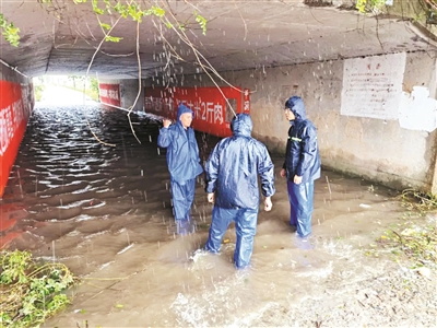 | 平湖市政协委员严彬现场查看桥梁涵洞积水情况,协调相关部门消除安全隐患。 |