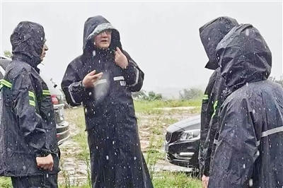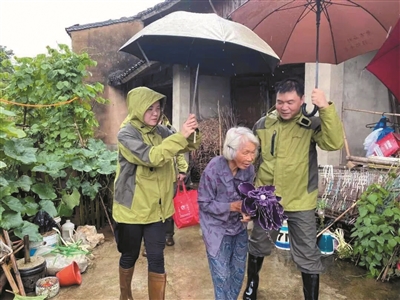 | 宁波市政协驻村干部顶风冒雨在许民村转移群众。 |