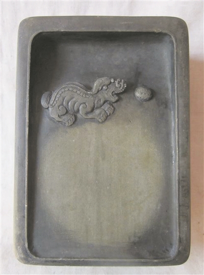 洮砚,亦称“洮河砚”,其料取于甘肃洮河,与端砚、歙砚、澄泥砚并称“四大名砚”。洮砚,呈绿色,亦有赤紫色者。古人称绿色洮砚为“鸭头绿”“绿漪石”“鹦哥绿”。早在唐代时,洮砚就广为流行,宋朝时因其珍贵,而被选为贡品。宋代大书法家黄庭坚对洮砚有“久闻岷石鸭头绿,可磨桂溪龙文刀。莫嫌文吏不知武,要试饱霜秋兔毫”之赞誉。到了元代,战事纷沓,交易渠道梗阻不畅,洮砚石矿料开采和制砚出现停顿中断现象。那时的洮砚极为稀少,金朝诗人元好问赋诗曰:“县官岁费六百万,才得此砚来临洮。”明代,为了控制滥采的混乱局面,朝廷派官员把守石矿,实行有序开采。清代,洮砚仍然是贡品,然而由于近千年的持续开采,此时的洮砚,已经是一砚难求了。