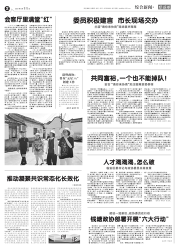联谊报讯 “选题好、有意义!形式好、有效果!建议好、有价值!”日前,在杭州市临安区政协“请你来协商·青山湖科技城产业人才支撑”专题协商会上,区委书记童定干点赞。