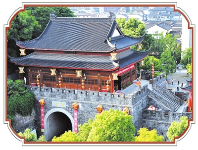 钱镠显然是别有用心的,这座城楼一反坐北朝南的传统建筑惯例,坐南朝北,象征着钱镠面北称臣、效忠中原之义,而取名为“朝天门”。