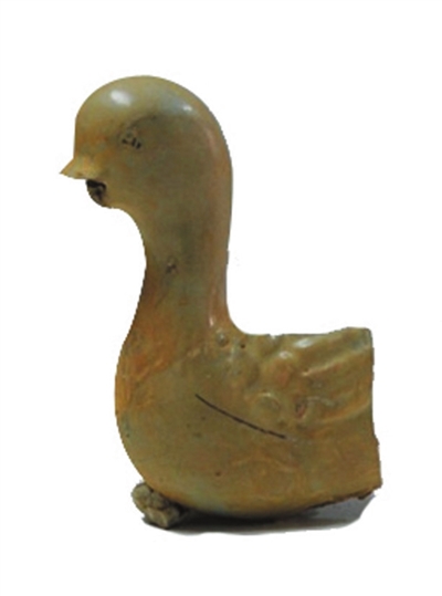 头部呈圆弧形,鸭嘴缺损,颈部线条流畅,弧度舒展,鸭身上部有残存的凸起翅膀造型……馆内众多端庄古朴的南宋官窑瓷器中,有一件鸭形香熏文物显得格外引人注目。