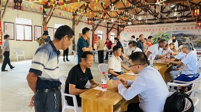 近日,民革杭州市委会书画服务团、医卫支部赴杭州市富阳区方家井村联合开展“同心·博爱”送画义诊活动。在该村文化礼堂,书画家为村民即兴创作书画作品20余幅,医务团队接诊70余人次,党员律师接待法律咨询10余人次,受到村民们的欢迎。