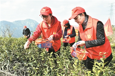 温岭政协“红马甲” 抢摘茶叶助茶农