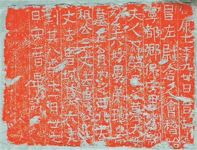 东晋刘训夫人荣氏砖志,高28厘米,宽38厘米,隶书刻文。砖面划线十一栏,实刊文十列,共计八十二字。砖志出土详情不明。录文断句如下: