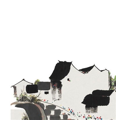 推窗见山。霞光已经渲染着对面的醒山,从山巅至山腰,随意地晕染开来。山边乳黄、灰白、砖红色的村舍,零星嵌在这茂林修竹里,半隐半现。湍源溪从绿屏似的山谷里穿出,淙淙向前。
