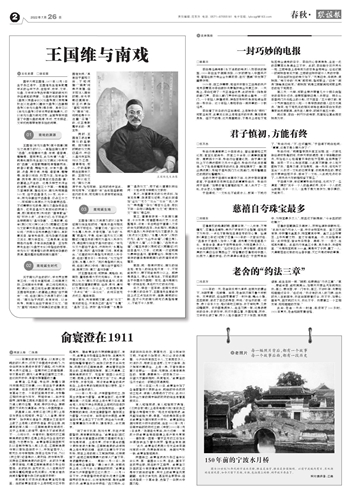 1930年的一天,老舍到北师大演讲,在朋友的撮合下,与胡絜青一见钟情。后来,老舍到济南齐鲁大学教书。放寒假时,他给胡絜青寄了一封长信,蝇头小楷,密密麻麻,详述了自己的身世,并说:“你给我的第一印象,像个日本少女,咱们连吃三顿饭,你不爱吭声,又像闷嘴葫芦。你我都是满族人,生活习惯一样,这是很便利的条件;你很好学,我对外国名著、外国地理、历史、文学史也很了解,两个人肚子里装了不少东西,有共同语言,能生活到一起。”随即,他便提出“约法三章”:“第一,要能受苦,能吃窝窝头,如果天天想坐汽车就别找我;第二,要刻苦,学一门专长;第三,不许吵架,夫妻和和睦睦过日子。”他还说:“我没有欧洲人的习惯,出去时夫人在前面走,我在后面跟着打伞,我不干;如果心里有气,回家就打太太,我也不干。我愿建立一个互相友爱、和和睦睦的家庭。”