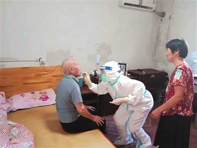 面对突如其来的疫情,浦江县政协各级组织和政协委员积极行动,全力以赴抗击疫情。图为傅建英委员上门为行动不便、居家隔离的人员进行核酸采样。