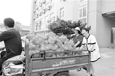 近日,嘉兴市南湖区新嘉街道政协联络室开展“传播‘政’能量 ‘协’手创文明”慰问志愿者活动。图为方晓虹委员自费购入550斤滞销黄桃,并将黄桃送给烈日下辛苦忙碌的志愿者们。通讯员 陈娴欢 郭园园