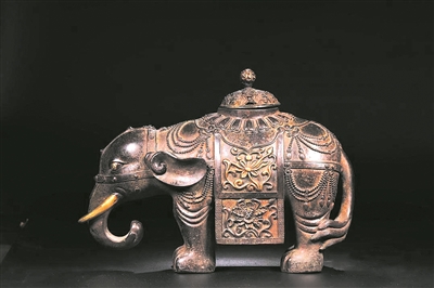 太平有象是中国传统吉祥纹样。象,瑞兽,厚重稳行,能驮宝瓶,故有“太平有象”“喜象升平”之说,寓意河清海晏、民康物阜。陆游曾赋诗曰:“太平有象天人识,南陌东阡捣麦香。”《汉书·王莽传》记载:“天下太平,五谷成熟。”象已然成为吉祥、喜庆的祥瑞象征。瓶与平同音,故吉祥图案常画象驮宝瓶,瓶中还插有花卉作装饰。太平有象即天下太平、五谷丰登的意思。历代帝王皆以铜、玉、瓷等材质御制“太平有象”器型,或陈于厅堂之中,或置于案台之上,以求“四海升平、吉祥平安”之福瑞。