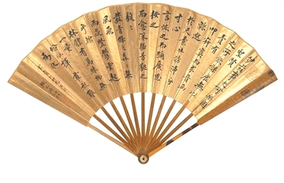 张元济先生擅长行书,书法端庄典雅,在扇面上所题为陆机《文赋》节录:“伊兹事之可乐,固圣贤之可钦。课虚无以责有,叩寂寞而求音。函绵邈于尺素,吐滂沛乎寸心。言恢之而弥广,思按之而逾深。播芳蕤之馥馥,发青条之森森。粲风飞而猋竖,郁云起乎翰林。体有万殊,物无一量。纷纭挥霍,形难为状。”落款为:“云青仁世兄法正,张元济时年八十。”
