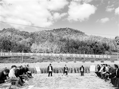 金秋丰收时节,在文成县南田镇十源社区光明村,南田镇政协委员履职小组将“民生议事堂”活动搬进了稻田里,共商“打响高山稻米品牌 拓宽群众增收‘稻路’”。