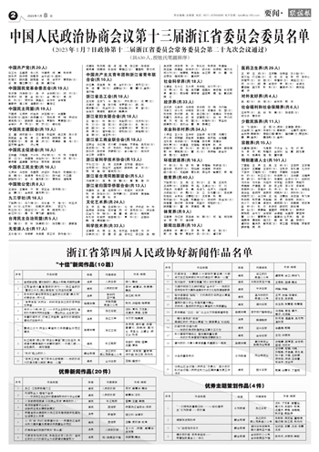 中国人民政治协商会议第十三届浙江省委员会委员名单