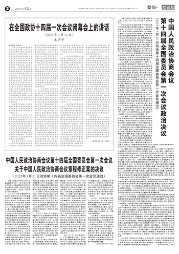 中国人民政治协商会议第十四届全国委员会第一次会议政治决议