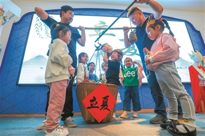 挂蛋、斗蛋、称重……立夏节气,宁波市海曙区政协段塘联委会联合新典社区七色爱心共富工坊,编织七彩蛋套送给启文幼儿园的小朋友,还给孩子们柱蛋、称重,一起玩转多彩立夏民俗活动。