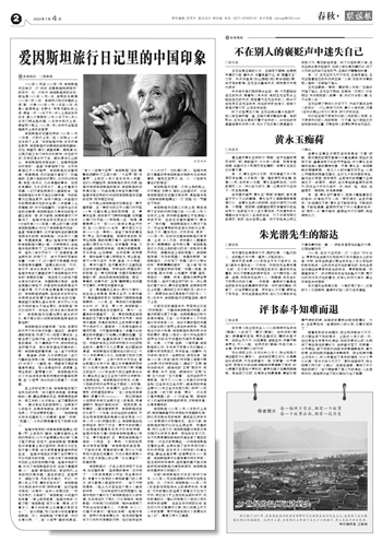 这部日记的编者泽夫·罗森克兰兹在《历史导读》一文里说爱因斯坦对中国人的看法明显充满了矛盾:“他既同情他们所处的悲惨境地,又在一系列非常令人不安的言论中将其非人化。他似乎真的担忧中国人可能会取代世界上其他所有民族。”罗森克兰兹的分析是,爱因斯坦所持印象与刻板的模式,同自19世纪50年代开始在西方世界流行的关于中国的负面形象高度一致。这是一个方面,但换一个面来看,爱因斯坦的认识,亦未尝不可是令我们借他人的眼光来观察自己,来作自省。《旧唐书·元行冲传》有句云:“当局称迷,傍观见审。”胡适1930年4月在《新月》月刊第二卷第十期上发表《我们走那条路?》,提出了“五鬼”闹中华的说法。胡适说的“五鬼”即贫穷、疾病、愚昧、贪污、扰乱。胡适说这“五鬼”也是“五大仇敌”“五大恶魔”。他开出的药方是教育。陈方之1934年12月商务印书馆出版《卫生学与卫生行政》,胡适写的序言径题为《公共卫生与东西文明》,呼吁“公共卫生是‘人的文明’的第一要务”。这也可以看作是国人的一个“内自省”吧。胡适的这个内省和爱因斯坦的旁观,对照起来看,也是有意味的。