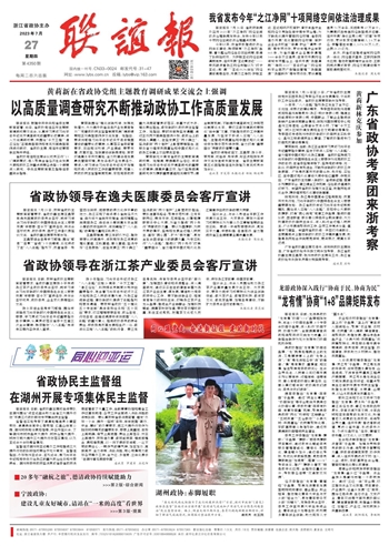 联谊报讯 7月24日至25日,广东省政协主席林克庆率团来浙江考察经济社会发展情况,交流政协工作经验做法。省政协主席黄莉新参加考察。