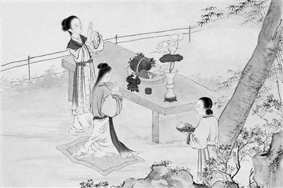 古代七夕节民间有乞巧的习俗,年轻的姑娘和少妇都要行拜祭礼仪。 |