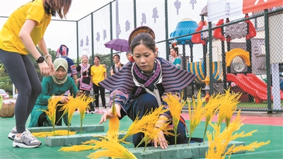 图③近日,长兴县政协、县委统战部(民宗局)、雉城街道党工委联合举办“韵动石榴红 同心迎亚运”民族趣味运动会,来自苗族、维吾尔族、汉族等多个民族的17个代表队近200人,参与背篓接绣球、射击争夺战等体育项目,喜迎亚运,凝聚民族情。