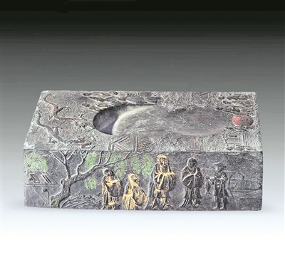墨锭包浆醇厚,描金细致,墨色黑亮。因为掺有冰片等数十味中药香料精制而成,闻来依旧暗香萦绕,是创作收藏之佳品。墨锭还采用浮雕手法,将险峻的奇峰、山间的云雾展现得疏落有致。墨锭上的人物面容庄重古朴,面部表情、体形神态各不相同,衣纹排叠遒劲,苍松翠柳,红日小舟,精美异常,充分体现了雕刻者的艺术底蕴和功力,塑造了孔子学而不厌、诲人不倦的光辉形象,也体现了古人尊师重教的优良传统。