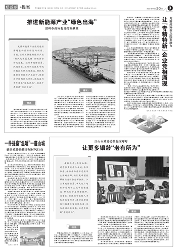 垂暮之年,华发如银。对于很多老年人来说,在家养老、含饴弄孙并不是老年生活的全部,他们更希望能够继续为社会发挥余热。江山市政协委员、市文化广电旅游局局长王冠平提案建议,积极引导支持老教师、老专家、老教授等银龄人才发挥优势作用,更好地帮助他们拓展丰富退休生活、参与推动社会发展,让更多银龄“老有所为”。