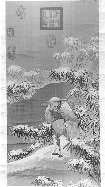 如果踏雪寻梅的意境可圈可点,冬日里雪中垂钓则更胜一筹。现藏于台北故宫博物院的《雪渔图》引人浮想联翩。画中的老者头戴斗笠、身披蓑衣,在漫天飞雪中垂钓一江风月,虽是极致寒冷却依然意兴盎然。郑谷在《雪中偶题》中对其饶有兴致地说:乱飘僧舍茶烟湿,密洒歌楼酒力微。江上晚来堪画处,渔人披得一蓑归。这也因此与柳宗元的“孤舟蓑笠翁,独钓寒江雪”相映成趣、互为一体,堪称雪中渔事的姊妹篇。
