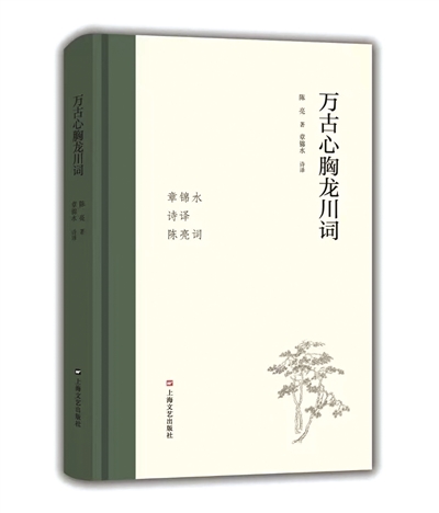 《万古心胸龙川词》,[宋]陈亮著,章锦水诗译(上海文艺出版社2023年9月版),章锦水是诗人,从学生时代开始写诗至今,近40个年头倏忽而逝,但他从未放弃,这是因为他已陷入撰诗过程中的精神快乐而难以拔身。这几年他在政务之余,又致力于陈亮研究,主事陈亮研究会,汲汲忙忙,案牍劳形,亦颇有所得。他对陈亮研究的热衷,包括这一回耗精费神诗译陈词,不仅是因为后者是同乡同籍的“人龙文虎”,更重要的是对陈亮的论学有着高度认同,对陈亮的艺术境界及追求产生了共鸣。“那棵老树,亦是故土难离。/树犹如此,人何以堪?/只有你,从来与我话语投机。/虽说是天各一方,但我们初心未改,/根本勿须问候挂怀。/谁也不去想我们是否妍痴骨/而会遭人鄙弃。/只愿我们如伯牙、子期,/琴弦不断,知音长在。”(《贺新郎·寄辛幼安,和见怀韵》章锦水译)袁枚曾云:“诗贵翻案。”所谓翻案,就是在前人的旧事旧语之上翻出新意来。词应也同样。章锦水诗译陈词,无疑是一种翻案,但他的翻案始终尊重原词者的思想和诗艺,并将此“魂”恰到好处地赋予了现代诗之形,这便是这部诗译集的成功之处。