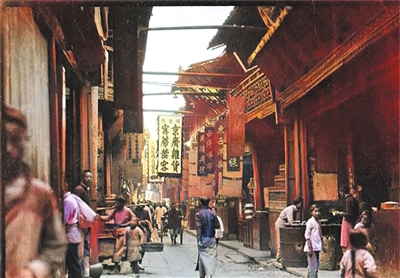 美国摄影家甘博曾两次到杭州,拍摄了数百张照片,这些照片成为了记录杭州历史的珍贵资料。图为1917年的杭州南宋御街,街道两边店铺林立。 照片提供者:江新诗