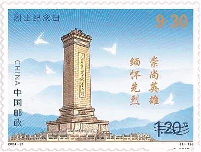 “烈士纪念日,丰碑立方寸”。矗立在首都北京天安门广场的人民英雄纪念碑,是近代以来中国人民和中华民族争取民族独立解放、人民自由幸福和国家繁荣富强精神的象征,是国家和人民纪念、缅怀英雄烈士的永久性纪念设施。今年9月30日是我国第11个烈士纪念日,中国邮政将发行《烈士纪念日》纪念邮票一套1枚,邮票以蓝天下的人民英雄纪念碑为主体,衬以群山,邮票右侧的“崇尚英雄 缅怀先烈”表现烈士纪念日的主题,上方书写“烈士纪念日”与“9·30”展现人民英雄永存天地之间。
