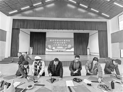 ▲日前,杭州市政协民建界别在临安天目村开展“送福送春联”文化惠民活动,让村民们在墨香中感受新春佳节的浓厚韵味和传统文化的独特魅力。
